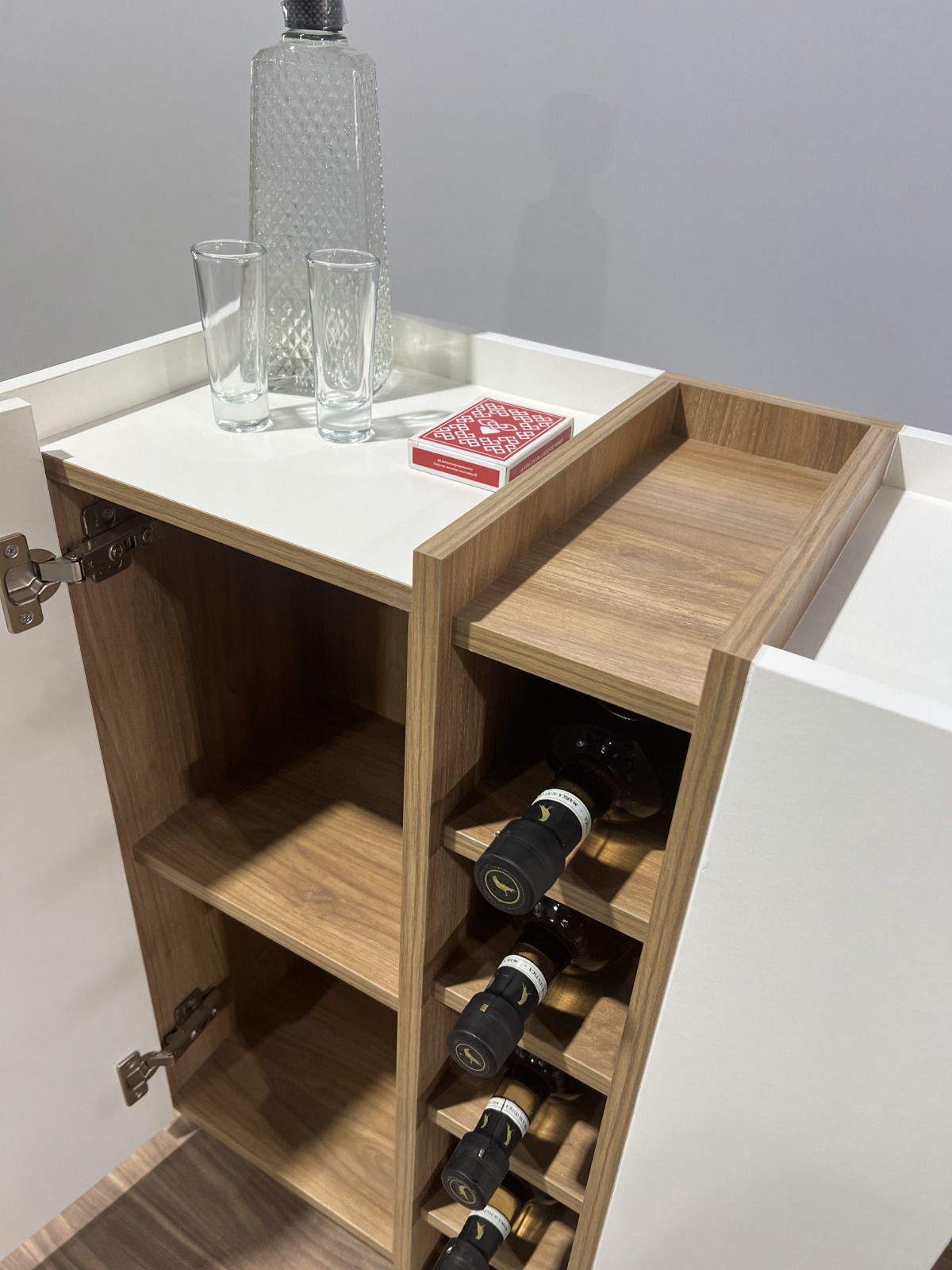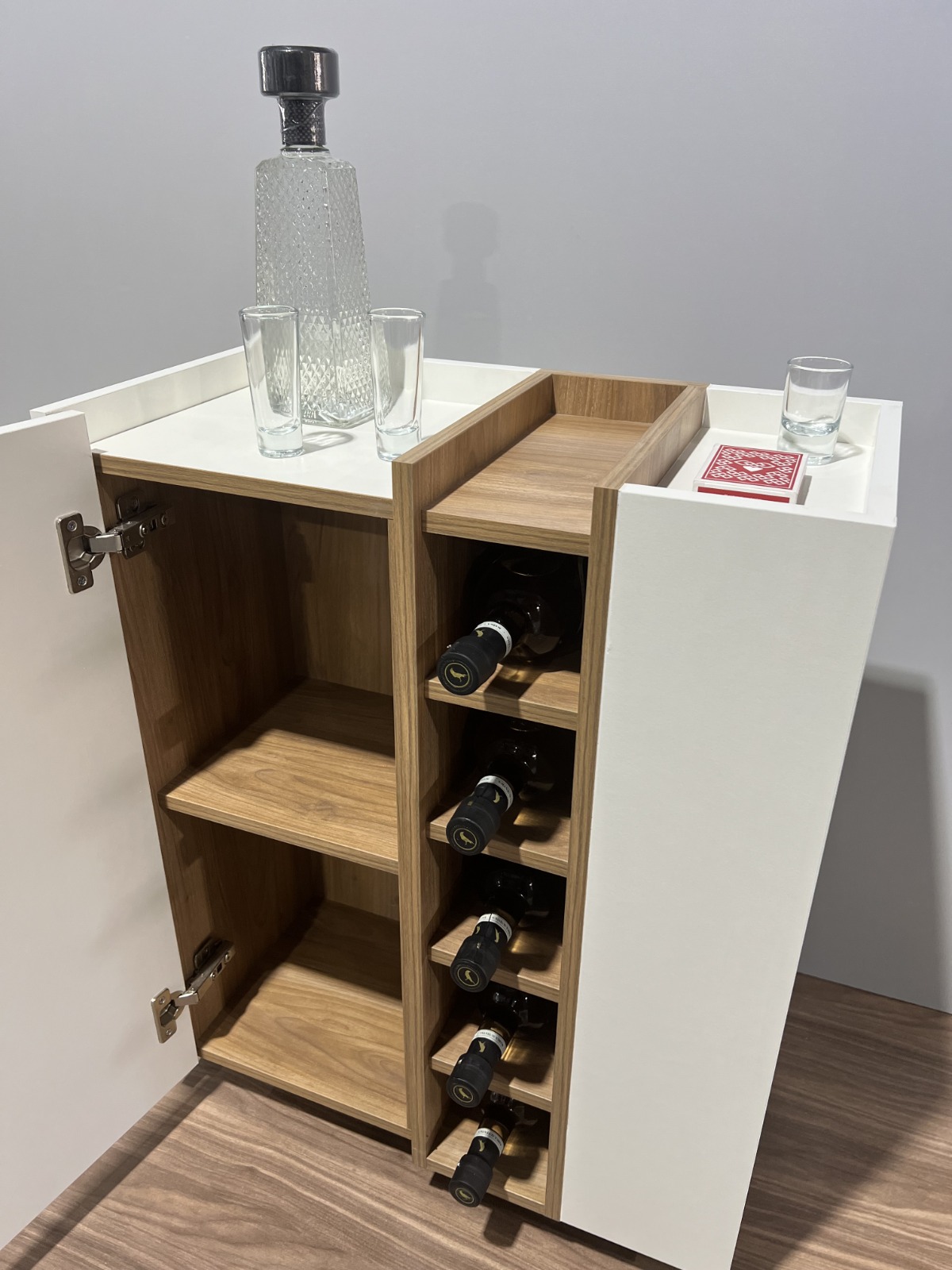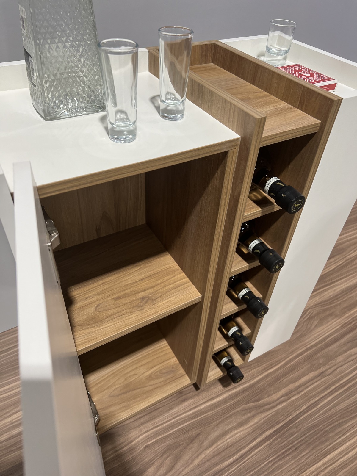 Cada detalle de esta cava ha sido meticulosamente diseñado para ofrecer no solo funcionalidad, sino también un impacto visual que realza la belleza de tu hogar. Imagina tener tus botellas favoritas organizadas de manera impecable, siempre a la mano para esas ocasiones especiales, mientras añades un toque de lujo a tu decoración.